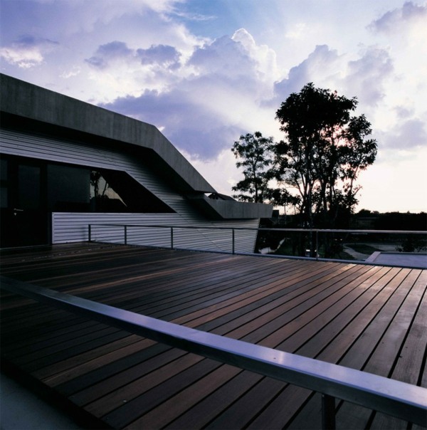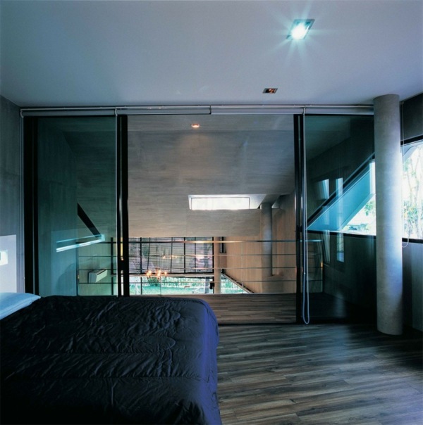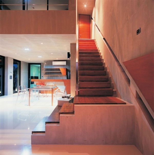 Najpravdepodobnejšia myšlienka vojnového bunkra patrí do dezolátnej, nepozývajúcej, sivej budovy. V tomto odvážnom prípade je to naopak minimalistický dizajn domu, čo zanecháva dojem pohodlia a tepla. Výsadbové plochy vonku, spojené s ozdobenými drevenými plochami, úplne pôsobia proti chladu stavebného materiálu. Teplé jemné tóny sú im minimalistický dizajn domu-Schéma používaná na vytvorenie príjemnej atmosféry v tomto priestrannom dome. Nábytok a osvetlenie sú ďalšie elegantné a stimulujúce ústredné body.