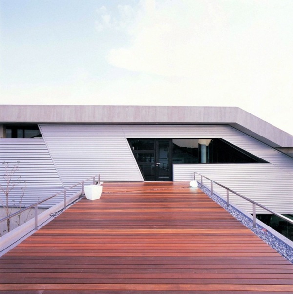 Aby sa dosiahol pocit otvorenosti vo vonkajších hraniciach, plán sleduje asymetrický tvar písmena H. Takže to minimalistický dizajn domu zahŕňa priestor pre dve veľké nádvoria na vonkajšiu relaxáciu a zábavu. Tieto dve vonkajšie časti rozdeľuje aj chodba, ktorá spája hlavnú budovu a hosťovské krídlo. Okrem celkového dojmu chráneného ústrania a vojenského dizajnu tomu nasvedčuje aj štrbinové okno, ktoré je možné vidieť na balkóne spálne.