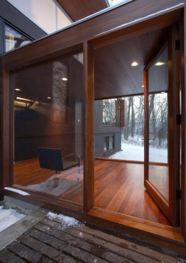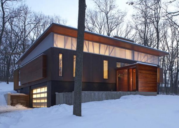 Budova je súčasťou vidieckych domov zo 70. rokov minulého storočia postavených v prírodnej rezervácii Prairie vo Wisconsine túto jar. To Dom použil základy starého vidieckeho domu. Nová štruktúra ponúka obyvateľom veľkú súkromnú oblasť. Na tri steny domu boli nainštalované oceľové plechy. Posledná stena obrátená na juh zostáva otvorená na nádvorie. Toto je zadná časť domu, ktorá ponúka pekný výhľad na prírodný les.