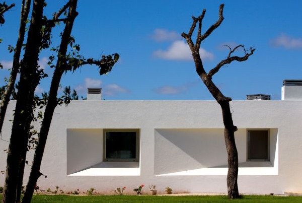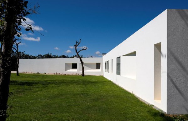 Sousa Santos Architects sú dizajnérmi tohto moderný biely dom, ktorá sa nachádza v meste Arelho, Obidos, Portugalsko. To Vidiecky dom v tvare Y je na rovinatom teréne, priestrannej oblasti, kde sa stretáva svieža zelená tráva a modrá obloha.