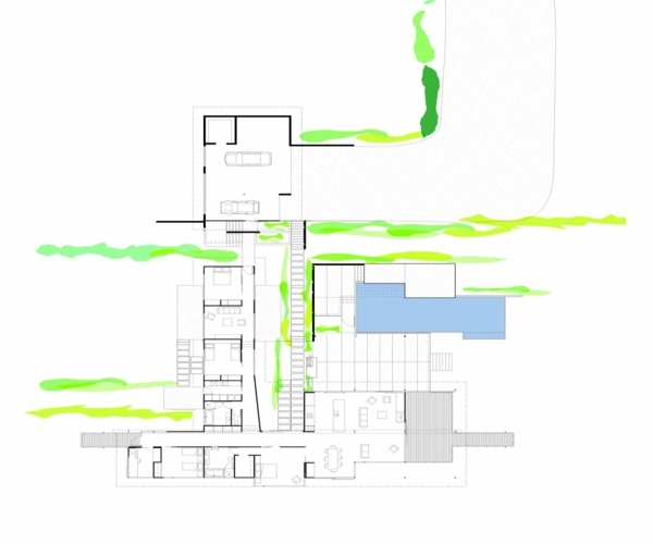 Okitu dom má iba jednu úroveň pôdy, ktorá sa horizontálne šíri k pobrežiu. Dizajn zodpovedá požiadavke zákazníka Pobrežný dom mať pre dvoch alebo viacerých ľudí. Dlhý plán v tvare T je tu najlepším architektonickým rozhodnutím. Má dve časti, jedna môže ubytovať hostí, druhá je určená pre majiteľa domu.