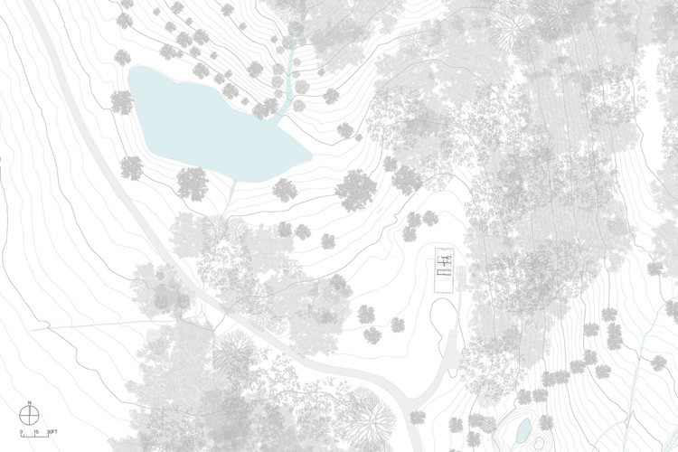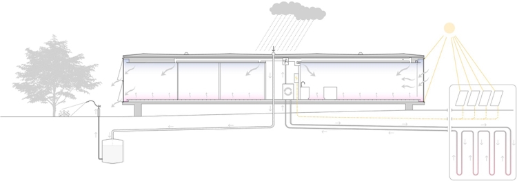 Tento penzión s rozlohou 185 metrov štvorcových sa nachádza na skale s výhľadom na pstruhový rybník a otvorenú poľnohospodársku pôdu. Dom bol navrhnutý ako pokojné útočisko na víkend a umožňuje návštevníkom vychutnať si a zažiť nádhernú krajinu. Namiesto vonkajších múrov môžete nechať svoj pohľad blúdiť po stromoch, jazere a poliach cez veľké panoramatické okná. Okrem toho má dom celý rad udržateľných technológií, ako sú vykurovacie a chladiace systémy s geotermálnou energiou, podlahové vykurovanie, prirodzené vetranie, elektrická ochrana pred slnkom, fotovoltaické systémy a zber dažďovej vody.