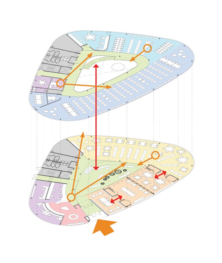 Podľa pravidiel Feng Shui sa architekti zaobišli bez priamych uhlov a tvarov a vytvorili plynulý priestor, v ktorom sú hranice rozmazané. To vytvára nepretržitý pohyb, ktorý vytvára ezoterický pocit.