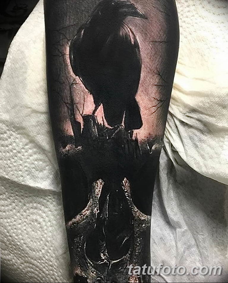 A fekete varjú tetoválás jelentése – információk a rajz jellemzőiről és a kész munkák fotó példáinak gyűjteménye