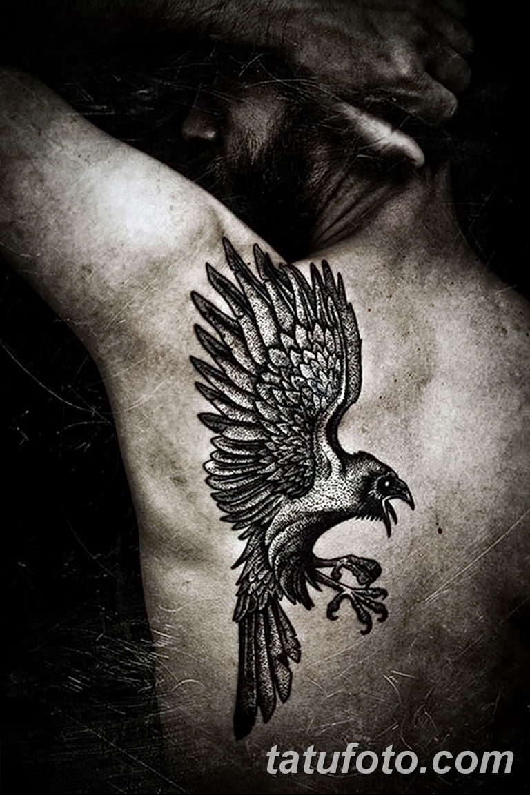Fotó példák tetoválás rajzolására fekete hollóval (266 fotó):