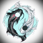 vázlat egy szokatlan tetováláshoz hallal és yin -yanggal – kép