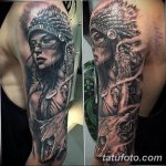 Úgy tartják, hogy az indiánok a legokosabbak az ókori népek közül. Képességeik lehetővé tették számukra, hogy a legjobb vadászok, halászok és építők legyenek. Az indiánok különös jelentőséget tulajdonítottak a valláshoz kapcsolódó tetoválások jelentésének. Különösen a kereslet állatok (madarak és halak) formájában. Ha bölényt ábrázolnak a testén, ez hálát jelentett az állatnak a meleg bőrért. A tetoválások hétköznapi képeknek tűnnek háromszög, szarvas és íj formájában, elfelejtett és ősi ábécé. A teljes kép érdekes történetet mesélhet el.