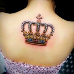 Korona és gyémánt tetoválás a hátsó lányon