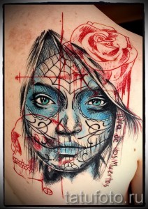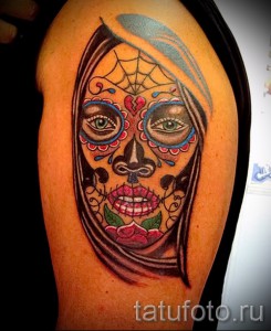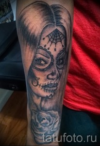 Az ilyen stílusú tetoválások egy nőt ábrázolnak, akinek arcán a koponya elemei láthatók. Általában csak a nő fejét rajzolják meg. A száj területén vonalakat húznak, amelyek hasonlítanak a varratokhoz, a fülekben – fülbevalók kereszt formájában, és a fejen rózsák vannak, amelyeket a hajba szőnek. A pókhálót néha a homlokra és az állra helyezik, az orrot és a szemeket sötétebb vagy világosabb színnel emelik ki..