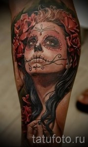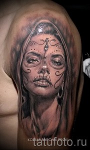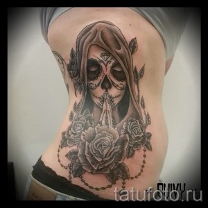 Santa Muerto tetoválási példa a fotón – és mit jelentenek