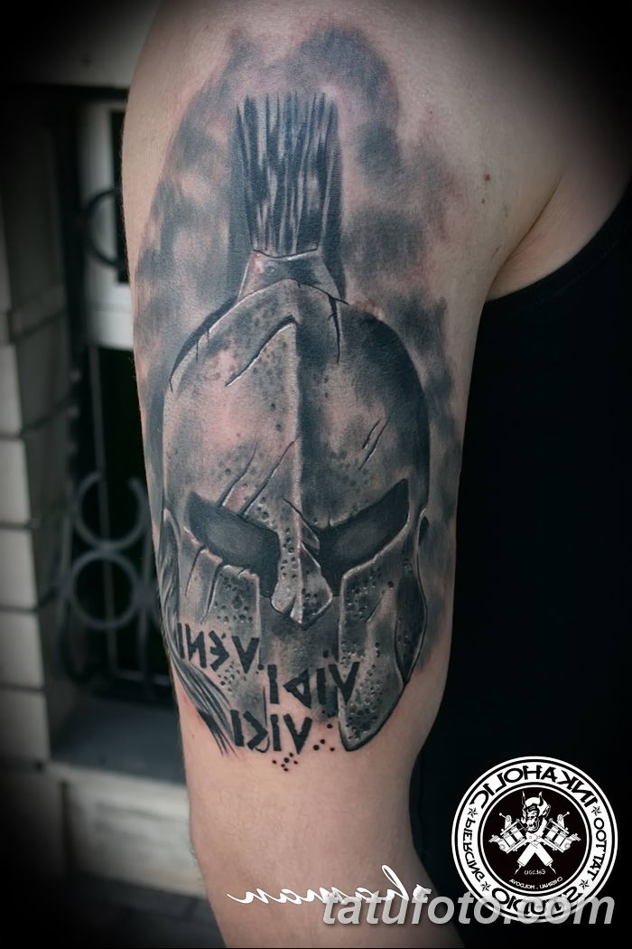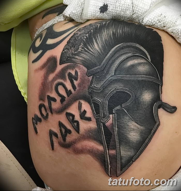 Fotó példák tetoválás rajzolására spártai sisakkal: