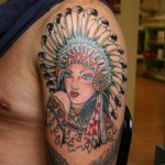 Az indiánok jellegzetes fejdíszeinek köszönhetően, amelyek tollból készülnek, és egyfajta jellemzője ennek az egész kultúrának, a tetoválás még vonzóbbá válik. Egy színes indiai tetoválás nagyon fényes és gazdag lesz.