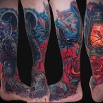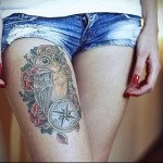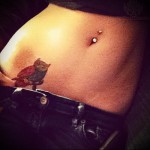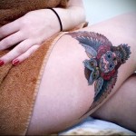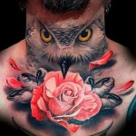 bagoly és rózsa tetoválás az alsó hasra férfiaknak