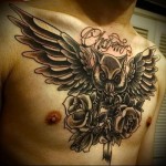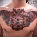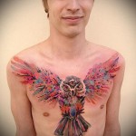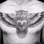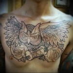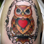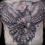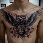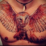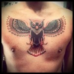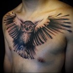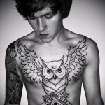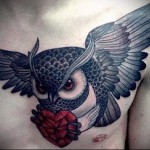 Bagoly tetoválás szívvel a mellkasban – fotó