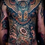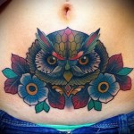 bagoly tálkalapban – tetoválás a gyomorban – férfiaknak