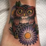 Kis bagoly tetoválás a lábán a fiatal lány számára