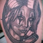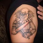 Tetoválási katalógusunk ezen részében különböző lehetőségeket láthat bohóc tetoválás képekben és fényképekben, amelyek jól jöhetnek mindenkinek, aki bohóc tetoválásán gondolkodik. Azok számára, akik szeretnék megtudni, mit jelent a bohóc tetoválás, készítettünk egy anyagot: