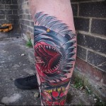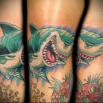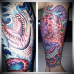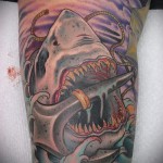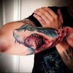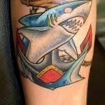 Cápa tetoválás a példákban a vezető tetováló művészek fotóján