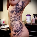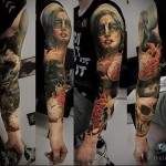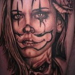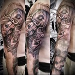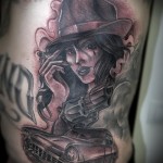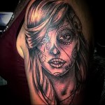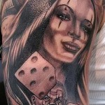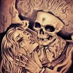 Nem kell “zseniális képességekkel” rendelkeznie ahhoz, hogy megértse, hogy a börtönben lévő “igazi gangsta” sokat gondol a lányokra, de nincs lehetősége megérinteni vagy megközelíteni őket. Egy ilyen tetoválás alkalmazása a testre egy kiút a helyzetből. A Chicano tetoválás stílus mexikói gyökerei – a rajzokhoz fülledt szépségekkel, jellegzetes népi mintákkal (rajzokkal) az arcon.