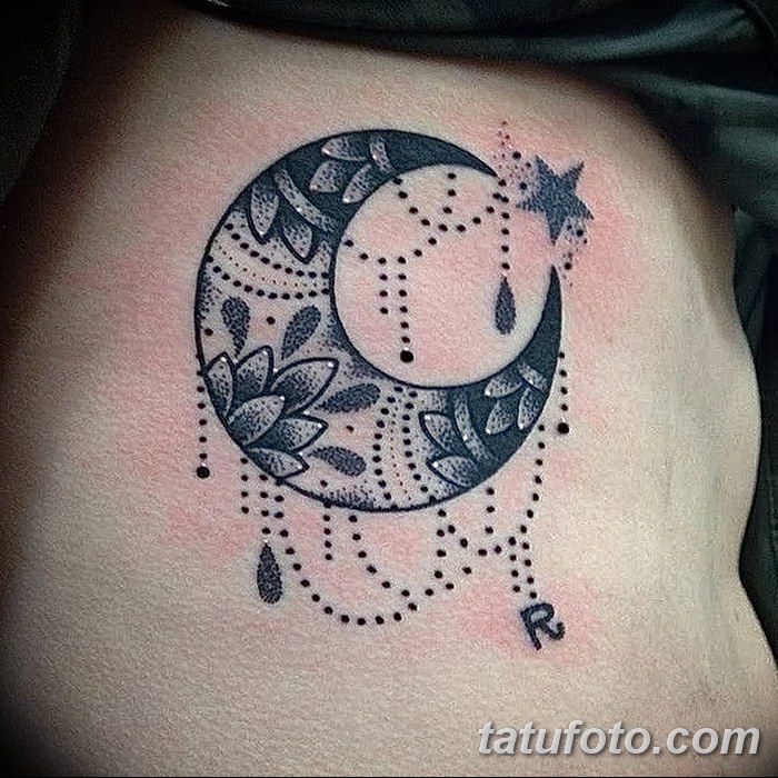Egy félhold tetoválás jelentése csillaggal – kész tetoválásminták gyűjteménye a fotón