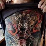 Farkas tetoválás – fotó a kész tetoválásról a testen