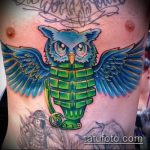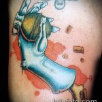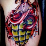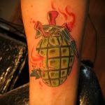 Úgy tűnik, hogy egy halálos fegyver, amely hatalmas pusztítást okozhat, és sok életet követelhet egyetlen használat során, gyakran megjelenik a tetoválás művészetében egy fényes és még vicces rajz formájában, bár nem csökkenti a fegyverek számát. figyelmeztetés céljából készített tetoválásokat.