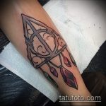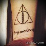 Fotó a Halál ereklyék tetoválásról – eredeti példák a kész tetoválásokra és lehetőségekre