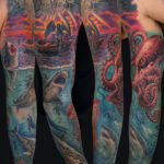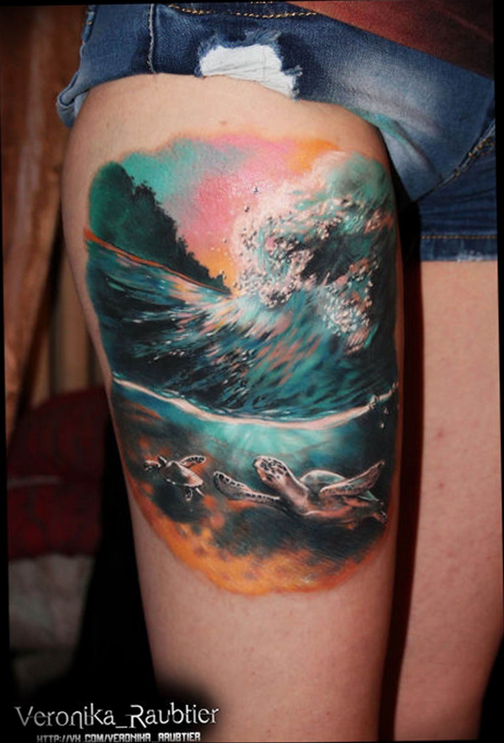 Természetesen nem kell tengerésznek vagy polinéznek lenned ahhoz, hogy szeresd az óceán hatalmas kiterjedését. Az óceán rendkívül változékony és sokoldalú kép. A mi korunkban az óceáni tetoválást is a szörfösök választják. A hullámok meghódítói testük élénk képein keresztül szenvedélyeket közvetítenek az elemek iránt. Tetoválásuk cselekményei tele vannak fantáziával és fiatalos lelkesedéssel, ezért különféle stílusokat és ötleteket ötvöznek.