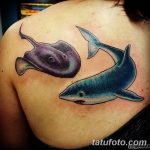 A “stingray” tetoválás jelentését is széles értelemben értelmezik. A gondolat szabadságáért és függetlenségéért, a nyugalomért és az egyensúlyért való buzgóságot mutat. Ugyanakkor ez a kép megőrzi a biztonságot és a titkosságot. A csípő rajzolását a testre különleges talizmánnak tekintik. A tetején van egy mágnes, amely vonzza a szerencsét és a boldogságot. És a lejtő farokrészében – az ügyesség és a veszély felhalmozódása. A csípős tetoválás a lélek szabadságát, a természet csodálatát szimbolizálja, összeolvad az állatvilággal.