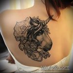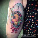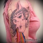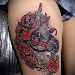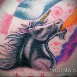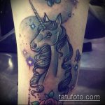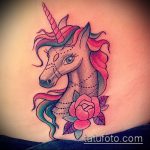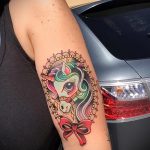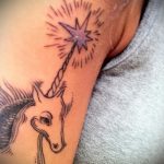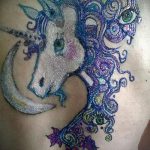 Fotó egy unikornis tetoválásról – érdekes lehetőségek az alkalmazott tetoválásokhoz a minta kiválasztásához