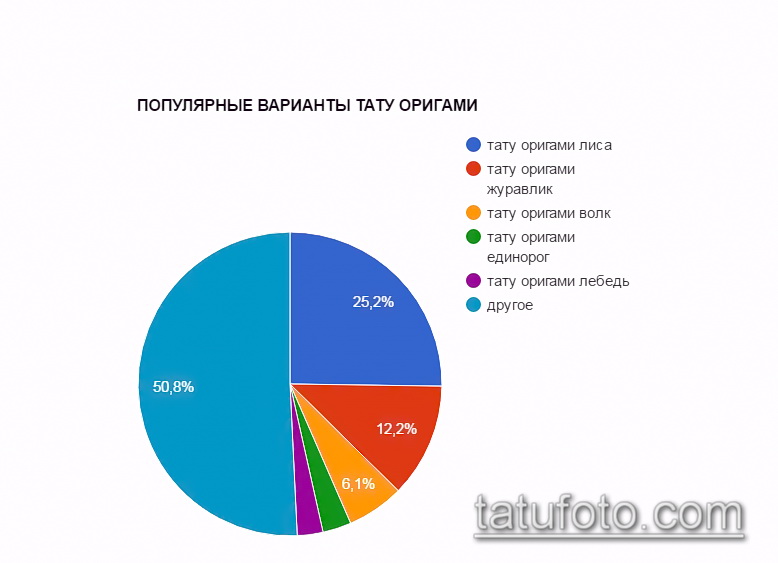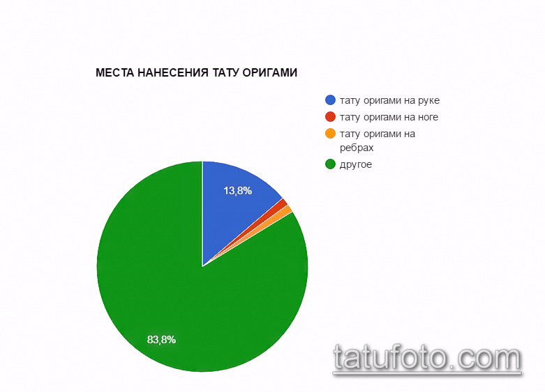 Az origamit a japán vagy a kínai kultúra szerelmesei választják, és azok az emberek, akik szokatlan formátumban szeretnék egy állat képét elhelyezni a testen.