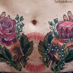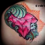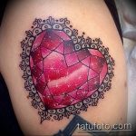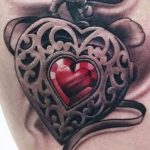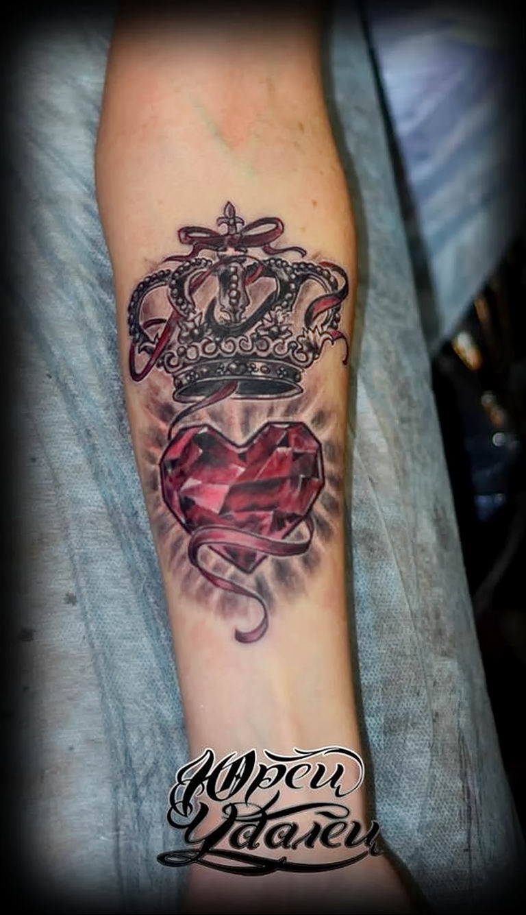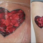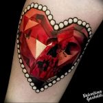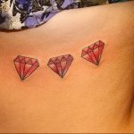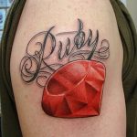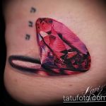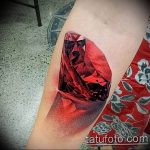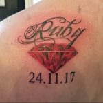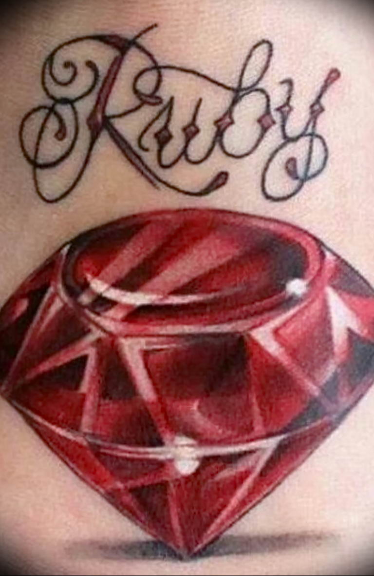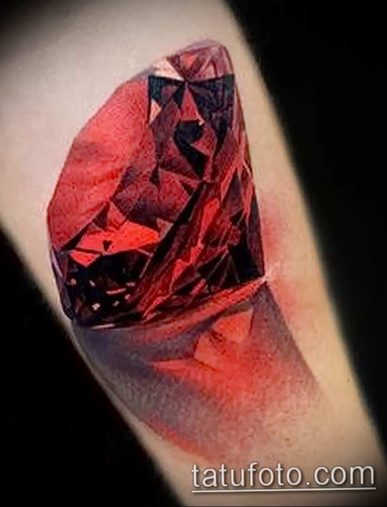 Mivel a rubin metszésében nagyon hasonlít a gyémánthoz, a tetoválás színesben történik – így azonnal világos lesz, hogy tulajdonosa mit akart mondani, amikor kitöltötte ezt a rajzot a testére.