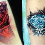 Mivel a rubin metszésében nagyon hasonlít a gyémánthoz, a tetoválás színesben történik – így azonnal világos lesz, hogy tulajdonosa mit akart mondani, amikor kitöltötte ezt a rajzot a testére.