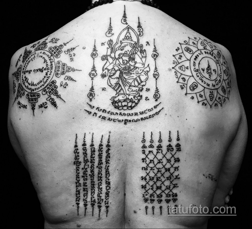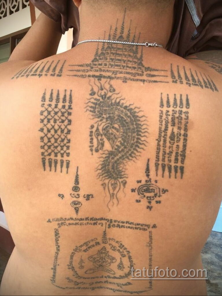 Fotó Sak Yant tetoválásról: tények a rajzok jellemzőiről és a kész tetoválásokról