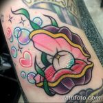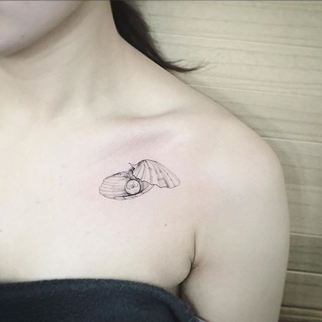 Sok lehetőség van az ilyen tetoválásokra. Leggyakrabban a gyöngyöt nyílt héjban ábrázolják..
