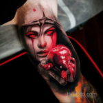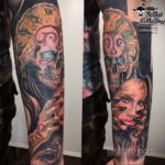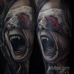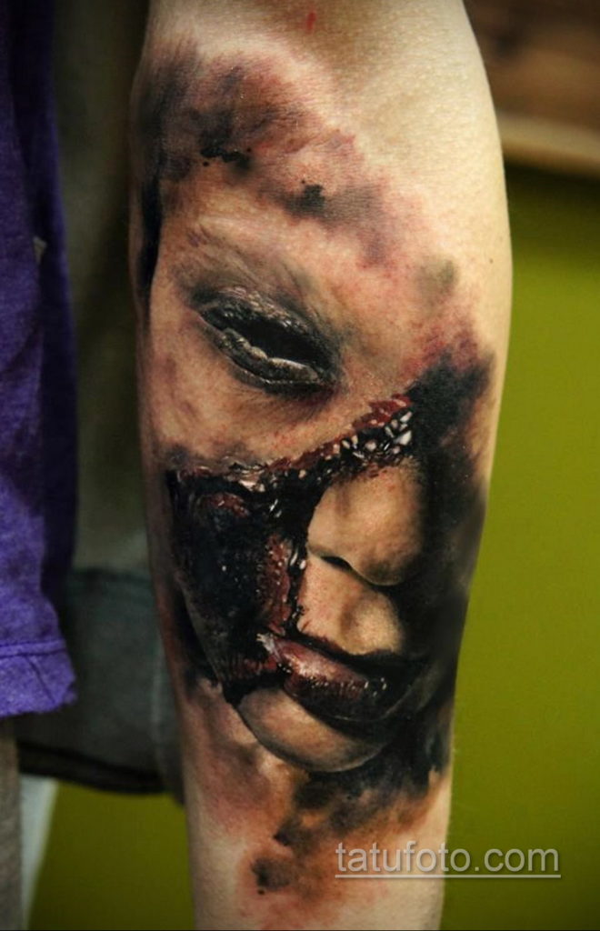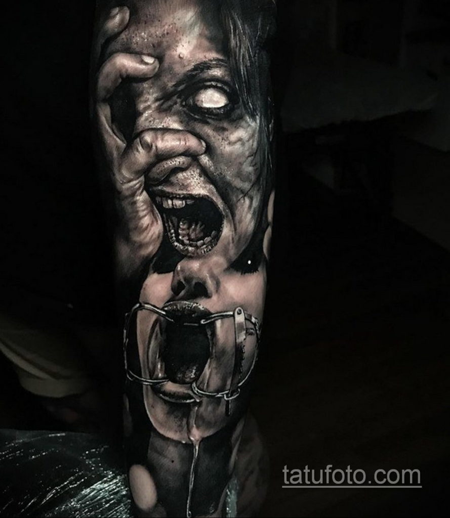 A horror tetoválás stílusa bármilyen technikával végrehajtható, nem kötődik egyetlenhez sem, de a képen történtek minden hátborzongatása teljes mértékben közvetíti a realizmus és a 3D stílusát.