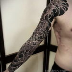 A keleti tetoválások híresek geometriai mintájukról is, amelyek szimmetrikus ismétlésekkel rendelkeznek. Ezeknek a mintáknak a megvalósítása sokféle, sokoldalú tárgyakból áll, amelyek nem illenek össze, ennek eredményeként a tetoválás egyedivé és egyedivé válik..