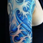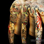A háttér, mint általában, a keleti stílusú tetoválások a keleti flóra szépségét és a különféle szerves állatvilágot – lótuszvirágot vagy bazsarózsát – használják. Ezenkívül a keleti tetoválás hátterében térfogatú fekete hullámokat használnak, amelyek körben helyezkednek el..