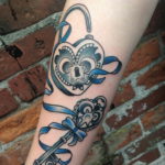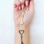 A kulcs tetoválás arról beszél, hogy hajlandó lezárni a múltat, és belépni az ajtón a jelenbe és a jövőbe. Lehet egyszerű vagy művészi. A kulcsokat virágok, szalagok, szívek, koponyák, filigránok egészítik ki. Elemek hozzáadásával megváltoztathatja és gazdagíthatja a dizájnt, ahol a tetoválás elnyeri egyedi jelentését.