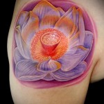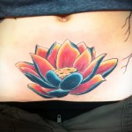 A színes lótusz tetoválás gyakoribb, mint a nem színes változat..
