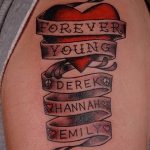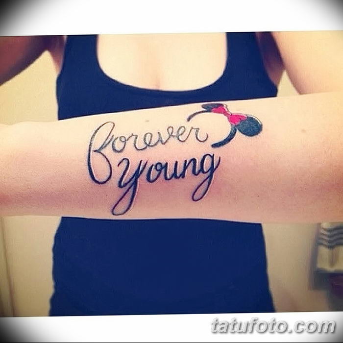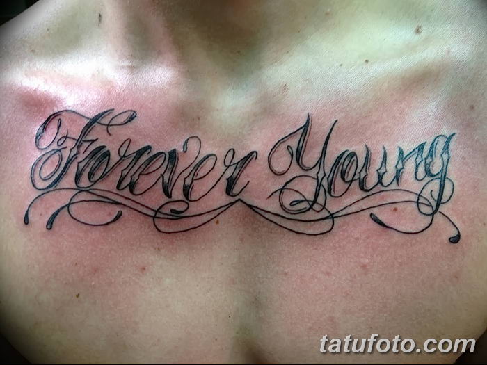 Azok, akik fel akarják hívni magukra a figyelmet, tetoválják a “Forever young” tetoválást egy jól látható helyen, a háton vagy a mellkason. Találkozhat ilyen felirattal rendelkező emberekkel, az egész oldal mentén tömve..