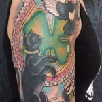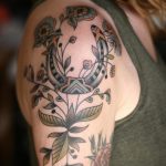 - fecskék és galambok – ezeknek a madaraknak a képe szerencsét hoz, de ha a fecske védi a tetoválás tulajdonosának életét, akkor a galambok – ápolják a szerelmi kapcsolatokat és az emberi boldogságot.