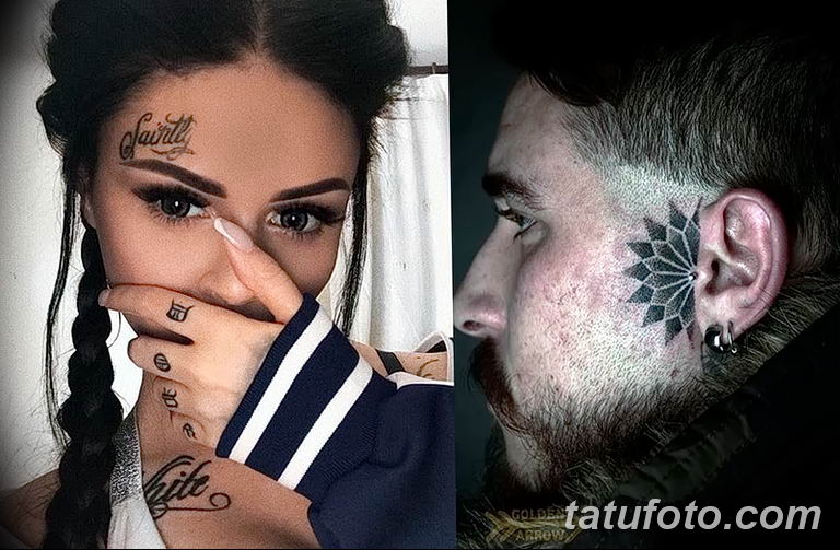Az arcon lévő rajzok leggyakoribb és demokratikus lehetőségei a szemöldök feletti tetoválások. Azonban nem is rejthetők el ruházat alatt, ami arra utal, hogy a kép tulajdonosának saját stílusa van. Ezenkívül az ilyen tetoválásokat egyáltalán nem kombinálják üzleti öltözködési kóddal..