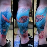 Tetoválás teknősök a képen. Új művek a legjobb mesterek előadásában.