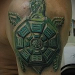 Japán számára a teknős mint rajz szent jelentéssel bír, mert a hátán tartja a “VILÁGHEGYET”, amely minden élőlény tárháza. A kínaiak kivételesen pozitív jelentéssel és jelentéssel ruházzák fel a tetoválást, ezért a minta gyakran megtalálható ennek a népnek a zászlóin és zászlajain..