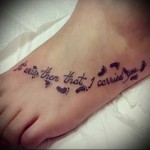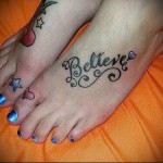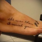 Nagyon gyakran a lábfejre írt feliratok nem gyógyulnak jól, és nem a legjobb módon néznek ki. A helyzet az, hogy a gyógyulási folyamat során a cipőkkel való folyamatos érintkezés miatt a festék egy része egyszerűen kiszabadulhat a bőrből, ami résekhez vezet és egyenetlenné teszi a színt. A csúnya tetoválás valószínűsége növekszik, amint közelebb kerül a talphoz. Vagyis minél közelebb van a felirat a talphoz, annál valószínűbb, hogy rosszul gyógyul..