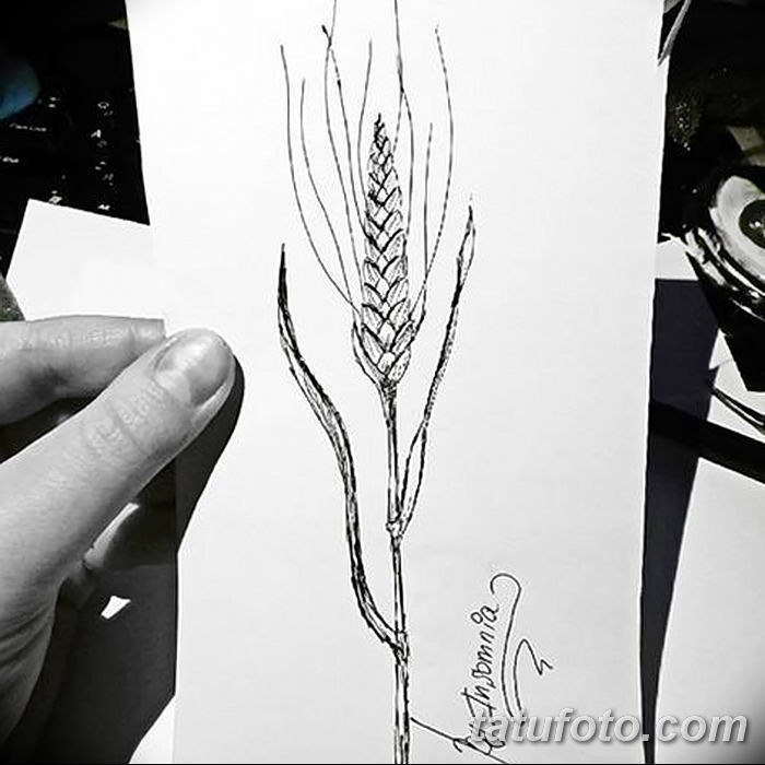 Búzafül -tetoválás vázlatai – eredeti rajzgyűjtemény egy fényképen lévő tetováláshoz