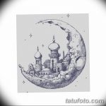 - Egy hónap csillagokkal körülvéve. Nem feltétlenül az iszlám szimbóluma. Egy ilyen vázlatot romantikusok és művészi személyiségek választanak, és azok, akik látják az élet értelmét a családban..