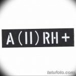 A vércsoport tetoválása elég egyszerűnek tűnik. De maga az alfanumerikus megjelölés mellett tematikus hátteret és egyedi részleteket is tartalmazhat: egy katonai jelző képét, egy patront, a meglévő betegségek (cukorbetegség, onkológia, epilepszia) további jelzőit. Kiválaszthatja azt a betűtípust is, amellyel a tetoválást alkalmazzák. Például gótikus stílusban vagy kalligráfiában. De ne feledje, hogy ha azt szeretné, hogy a tetoválás praktikusabb jelentést hordozzon, a feliratot olvashatóvá kell tenni..