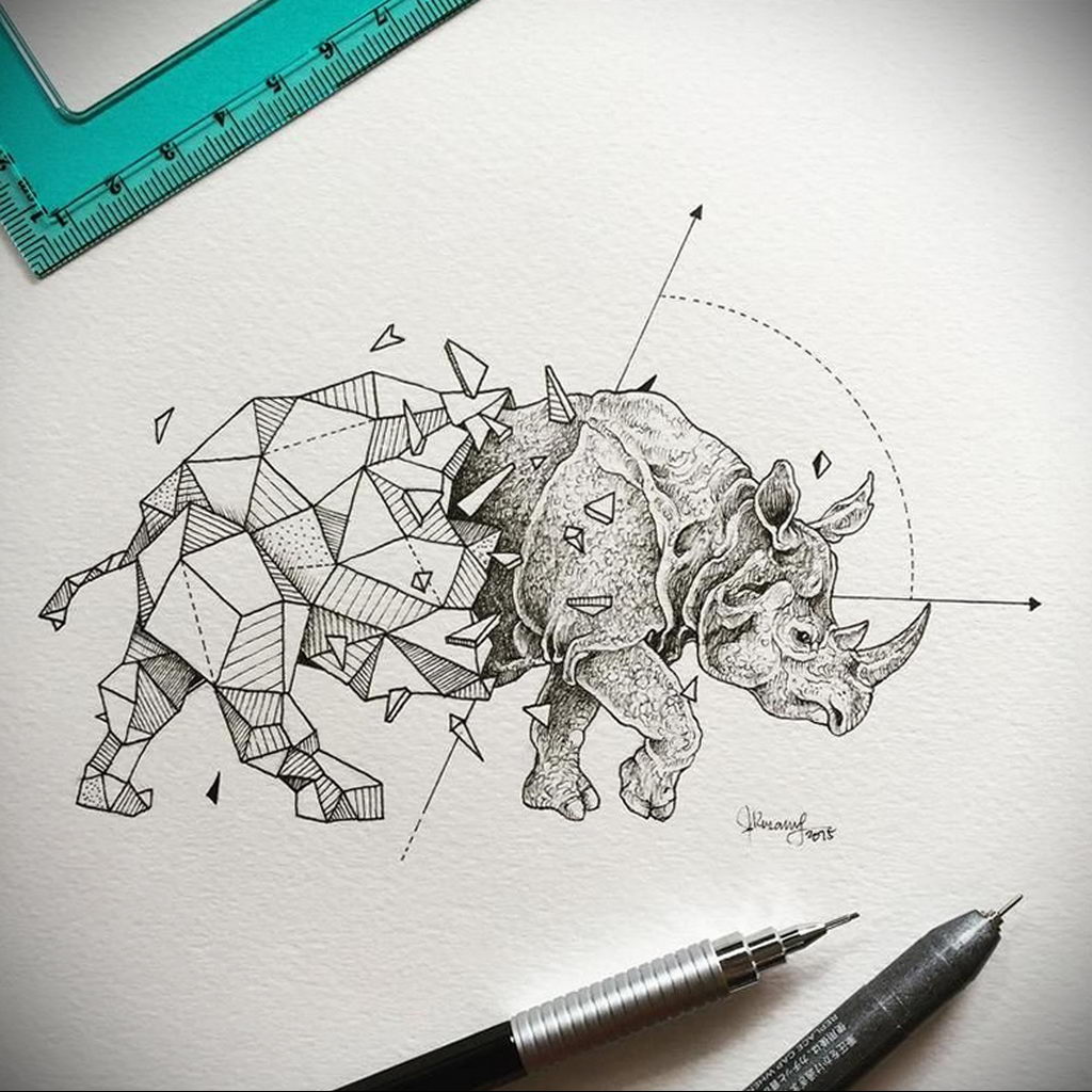 Az orrszarvú tetoválás technikája mindenképpen realizmus. Az állatok és a madarak különösen előnyösek ebben a stílusban. Ennek a stílusnak a gazdag színpalettája különleges varázst kölcsönöz a tetoválásnak. A vázlatban szereplő orrszarvú általában a fő részét foglalja el, mivel egy kis orrszarvú nagyon nevetségesnek tűnik.